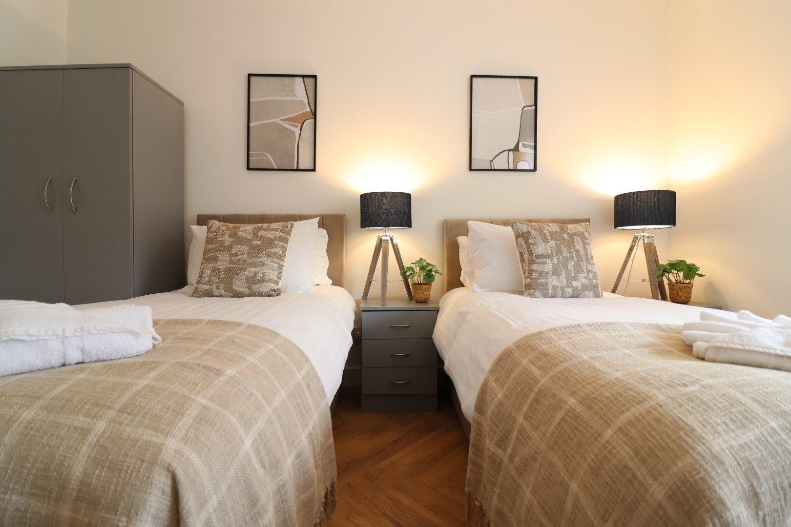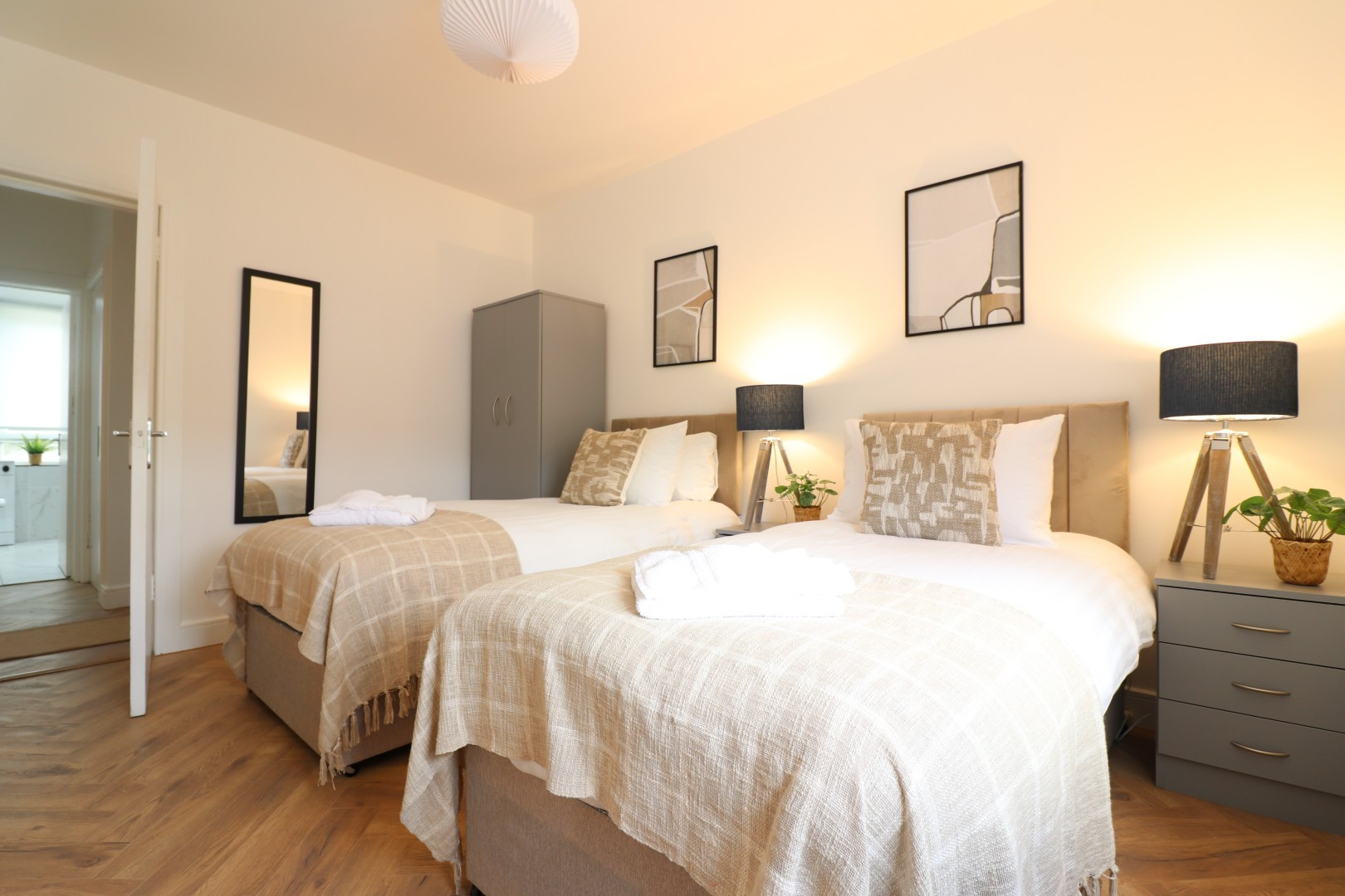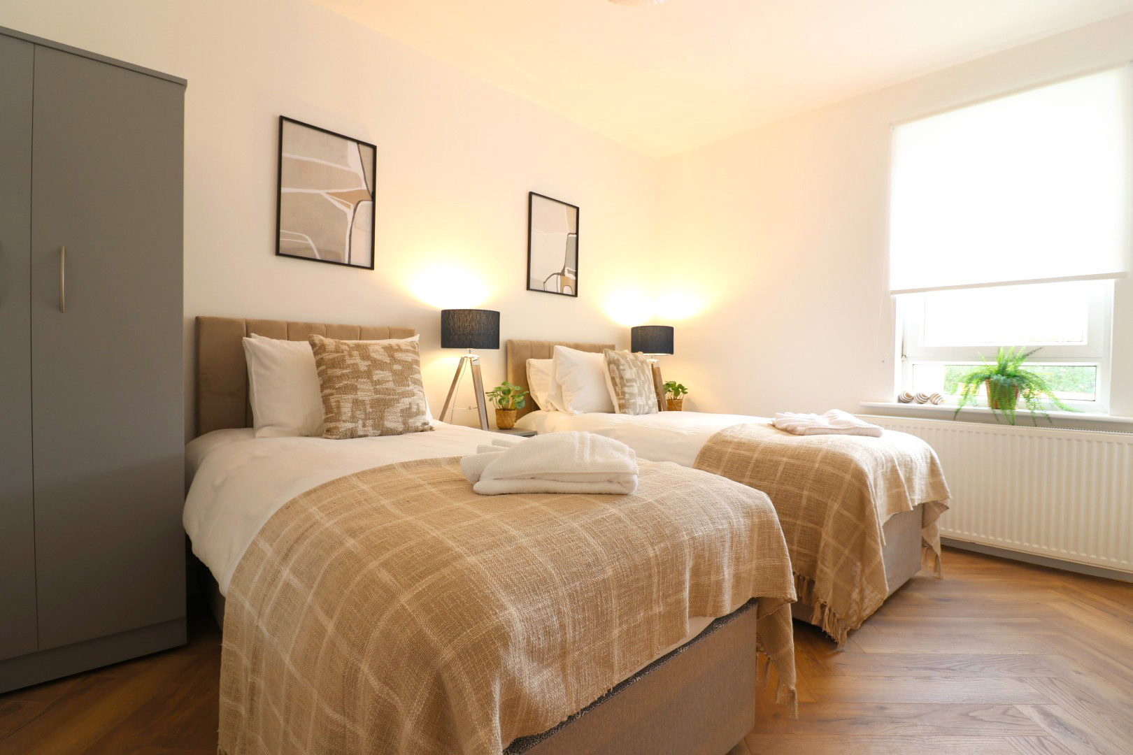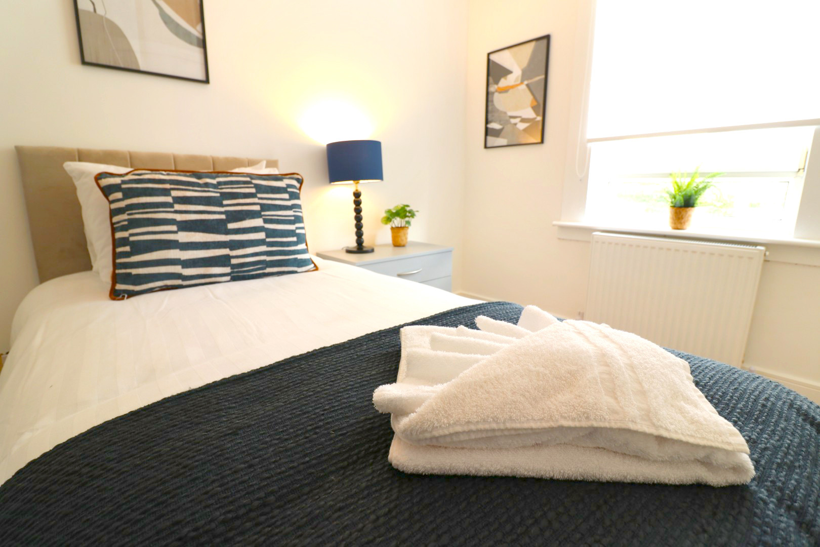 Our Oak House provides this with exclusive access to a self check in 3 bedroom property based in the Coatbridge area. The 3 bedroom property comfortably sleeps 5, having 3 spacious rooms with 2x twin bedrooms and 1 single bedroom.