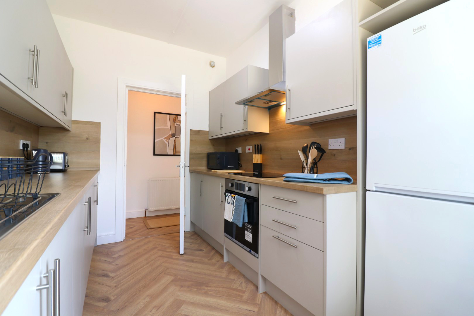 All hotel standard linen and towels are provided within the property upon arrival. The property has one well presented main bathroom and an open plan fully fitted kitchen. The property is also equipped with, free parking, Wi-Fi and a flat screen TV and all dining and cooking essentials.