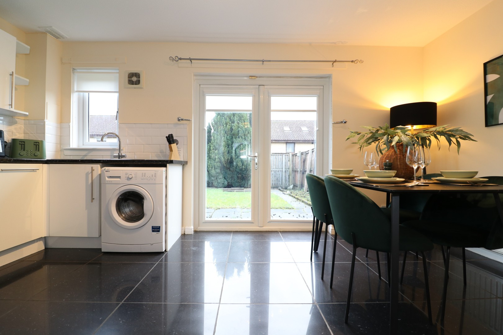 Our Summerhill House property provides this with exclusive access to a self check in 2 bedroom house based in Drumchapel. There is 1 double room and 1 twin bedroom. All hotel standard linen and towels are provided within the property upon arrival. The property boasts a well presented main bathroom, with a shower over the bath and a fully fitted kitchen and dining area.